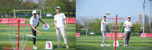 ·ÉÅÌÄ¿±ê¿ò£ºÍŶӳÉÔ±ÔÚÀιÌ5Ã׵ľàÀ뽫·ÉÅÌ´òÈë¿òÄÚ£¬Î´´ò½ø²»µÃ·Ö£¬Ã¿Î»¶ÓÔ±ÓÐ5´ÎͶÖÀʱ»ú¡£´ËÏîÄ¿Èçͬ¶¨µãͶÀº£¬½áºÏ·ÉÅ̵ÄȤζÐÔºÍͶÀºµÄ¾º¼¼ÐÔ£¬¶ÓÔ±ÃDzÙ×÷ÆðÀ´Ïà¶ÔÓÎÈÐÓÐÓà¡£